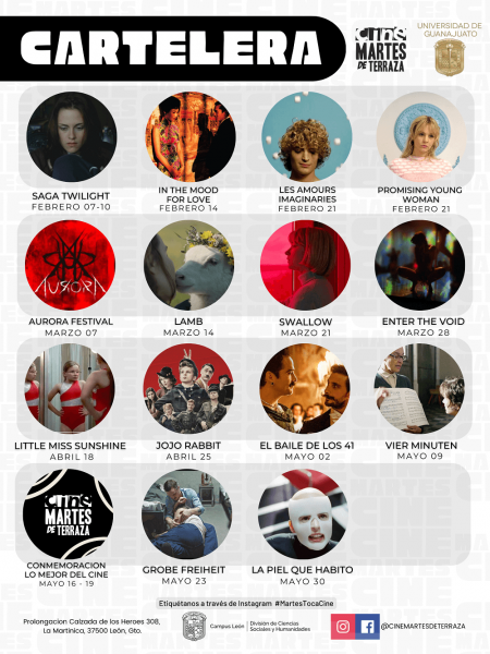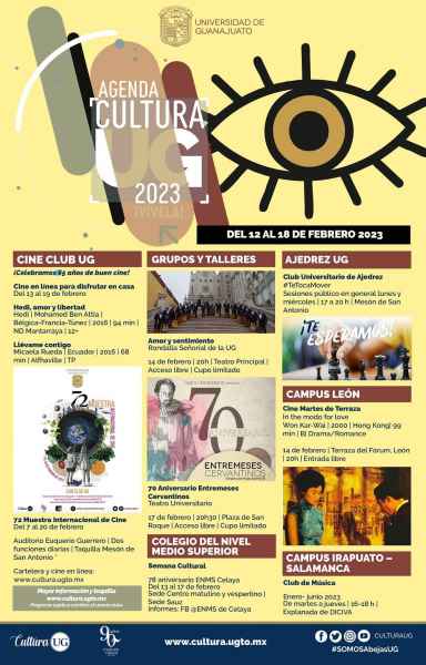 Asimismo, dentro de la 72 Muestra Internacional de Cine se presentarán del 7 al 20 de febrero dos funciones diarias en el Auditorio Euquerio Guerrero, los boletos se podrán adquirir en el Mesón de San Antonio. Se podrá consultar la cartelera completa, así como el acceso a Cine en Línea en el sitio www.cultura.ugto.mx