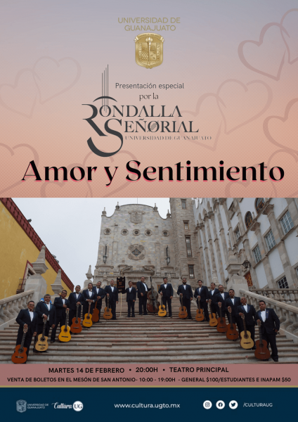 Además, como parte de la agenda cultural de la UG, este 14 de febrero se invita ser parte del concierto musical “Amor y sentimiento” con una presentación de la Rondalla Señorial de la UG a las 20:00 horas en el Teatro Principal. La entrada será libre.