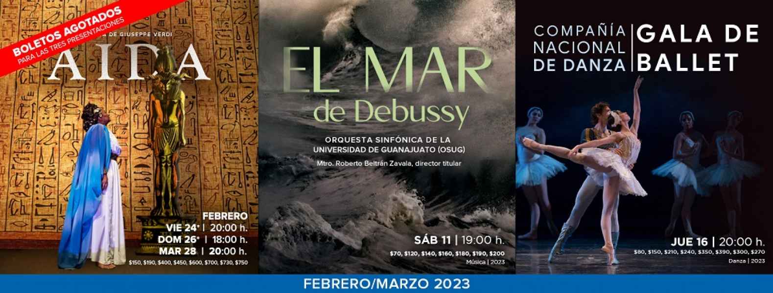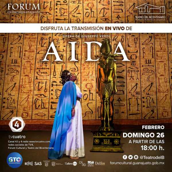 El Teatro del Bicentenario Roberto Plasencia Saldaña del Forum Cultural Guanajuato, en coproducción con la Sociedad Artística Sinaloense (SAS) y la Escenografía original de San Diego Opera (SDO), diseñada por Michael Yeargan, donada a la Sociedad Artística Sinaloense A.C. lleva a cabo una nueva producción de la Ópera Aida, en la que la OSUG participa, bajo la batuta del Mtro. Enrique Patrón de Rueda.
