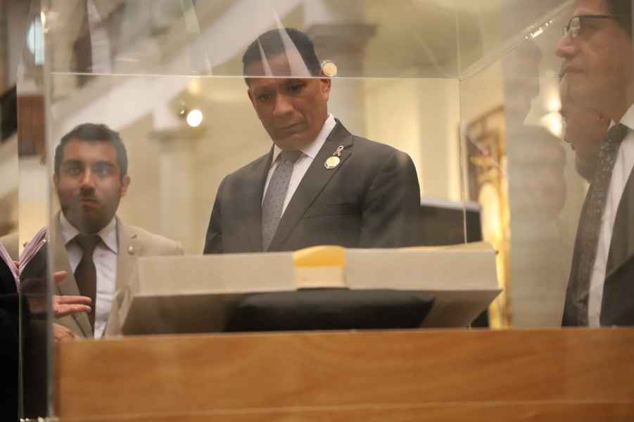 En su primer día de exposición, el facsímil fue apreciado por autoridades universitarias: el Rector General de la UG, Dr. Luis Felipe Guerrero Agripino; la Secretaria General, Dra. Cecilia Ramos Estrada; el Secretario de Gestión y Desarrollo, Dr. Salvador Hernández Castro; el Secretario Académico, Dr. Sergio Antonio Silva Muñoz; comunidad estudiantil, personal académico y administrativo de la Institución.