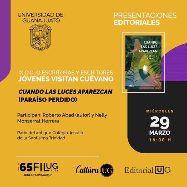 Guanajuato, Gto., a 24 de marzo de 2023.- Con el objetivo de generar un encuentro de pluralidades culturales desde la literatura, se realizará el IX Ciclo Jóvenes escritores Visitan Cuevano" dentro de las actividades de la Feria Internacional del Libro de la Universidad de Guanajuato (FILUG) en su 65 edición.