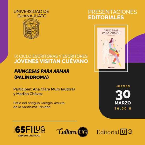 Otra presentación literaria tendrá lugar el 30 de marzo a las 16:00 horas con la obra de Ana Clara Muro, “Princesas para armar (Palíndroma)” acompañada por Martha Chávez; para finalizar a las 19:00 horas dentro del ciclo Citas textuales. Poesía, se presenta “Tan potente como el silencio” con la participación de Liliana Magdaleno y Tania Carrera.
