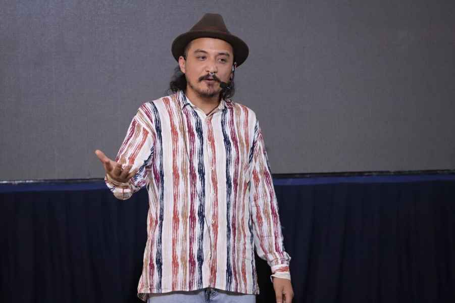 Entre risas, memorias y diversas interacciones con el público, Jorge Salvaje realizó una narración activa que acercó el arte literario a la idea del amor para responder las interrogantes: ¿Qué es? ¿Quién lo inventó? ¿Dónde se aprende? ¿Siempre ha sido igual? son algunas de las preguntas en las que el cuentacuentos navegó a través de la narración de tres cuentos.