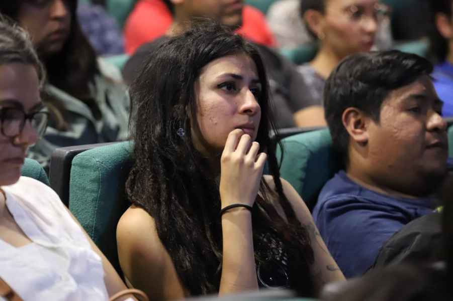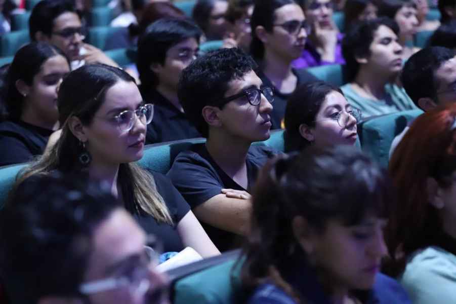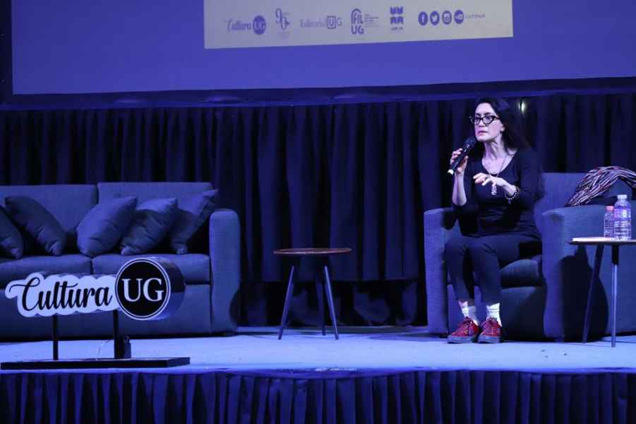 Ante cientos de personas, en su mayoría estudiantes, que se dieron cita en el Auditorio de la UG, se refirió a obras emblemáticas a las que Lésper ha criticado con dureza.