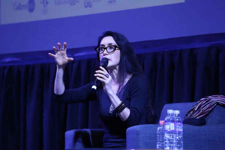 Guanajuato, Gto., a 30 de marzo de 2023.- Frente a un público que llenó el Auditorio General de la Universidad de Guanajuato (UG), la crítica de arte Avelina Lésper habló de “El fraude del arte contemporáneo”, libro en el que ahonda en el análisis de obras que considera, no son arte, pues no comunican nada por sí mismas.