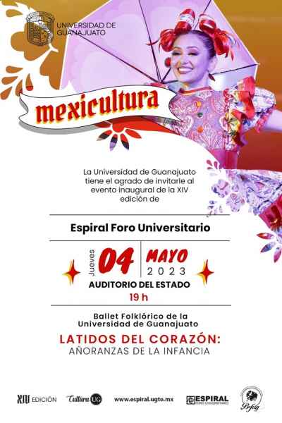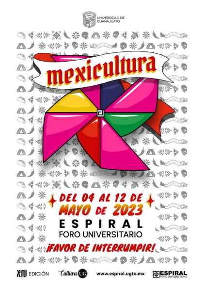 Con un nuevo giro, Espiral Foro Universitario, plataforma de impulso a la creación artística, para su XIV edición es denominado “Mexicultura” con el fin de difundir la expresión artística contemporánea de este país, caracterizado por una fusión de vibrantes colores, texturas y símbolos del arte popular mexicano en favor del rescate de elementos identitarios de sus tradiciones y costumbres.