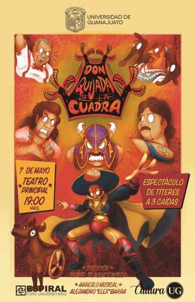 Además de una serie de eventos únicos presentados y caracterizados por su peculiaridad, como el estreno de la obra teatral “Don Quijada de la Cuadra”, producción estudiantil original de Manuel Fonseca, estudiante de Artes Escénicas de la UG. Visitará Guanajuato la compañía de teatro Complot Escena con su teatro de improvisación “La Improlucha” en la Plazuela de San Roque; la obra “Pedro y el Capitán” del grupo estudiantil de Trenzados UG.