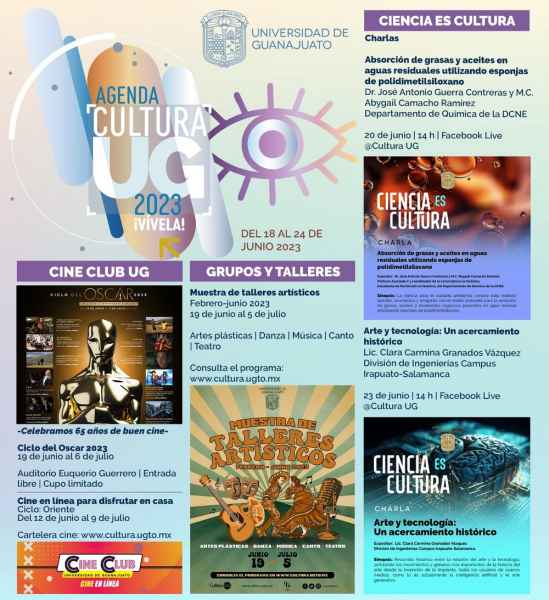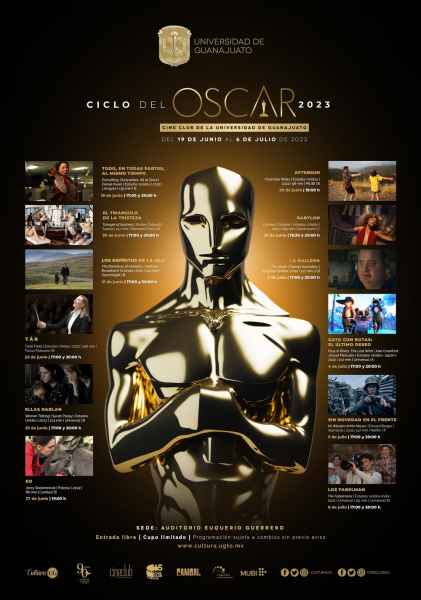 Guanajuato, Gto., a 16 de junio de 2023.- El Cine Club UG comenzará con el Ciclo del Oscar 2023, el cual podrá apreciarse a partir del 19 de junio y hasta el 6 de julio, siendo la sede para las proyecciones el Auditorio Euquerio Guerrero, con entrada libre. Mientras que Cine en línea para disfrutar en casa, tiene en cartelera el “Ciclo: Oriente”, que finalizará este 9 de julio. Para consultar carteleras, ingresar al sitio: www.cultura.ugto.mx.