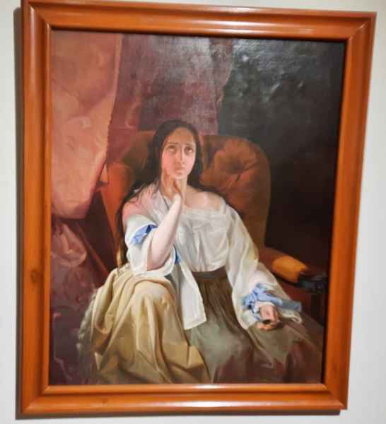 El cuadro en cuestión es la representación de una mujer enamorada, cuyo detalle de trazo y uso de color muestra una notable calidad artística de la autora. A decir de especialistas, Ángela Icaza se destacó por su trabajo en temas de compleja elaboración artística, incluida la excelente ejecución de copias de grandes artistas de la época.