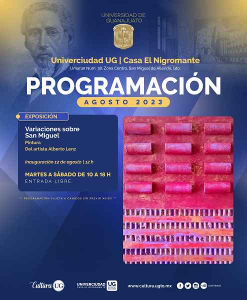 En la Univerciudad Casa El Nigromante, situada en el municipio de San Miguel de Allende, se convoca a ser testigo de la exhibición pictórica “Variaciones sobre Miguel Ángel” autoría de Alberto Lens, misma que continuará hasta el 25 de septiembre, de martes a sábado de 10:00 a 18:00 horas con acceso gratuito.