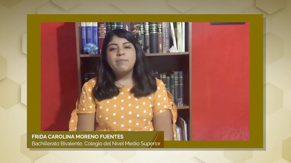 Entre las alumnas reconocidas, Frida Carolina Moreno Fuentes, estudiante de Bachillerato Bivalente de la Escuela de Nivel Medio Superior de León, comentó que está llena de satisfacción y orgullo, pues este reconocimiento la motiva a seguir esforzándose para lograr cada meta y sueño. Además de expresar su gratitud por el apoyo de su familia, compartió su sueño de estudiar Medicina y una especialidad en oncología, y crear una asociación para ayudar a niños que padecen cáncer.