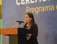 "Hoy quiero agradecer a tantas personas que hicieron posible que estemos aquí, de pie, y con la frente en alto, pero especialmente, gracias, muchas gracias, doctor Luis Felipe Guerrero Agripino, por impulsar este extraordinario y maravilloso Programa de Equidad Regional, porque hoy podemos decir que cambió nuestra historia (...) también agradecemos a nuestros padres, puesto que sin su apoyo no hubiéramos podido continuar, no hubiéramos tenido la fuerza suficiente de dejar nuestros hogares", asimismo extendió un reconocimiento a la coordinación que integra el PER.