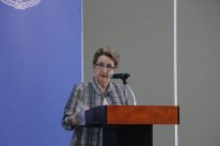 Por su parte, la docente del Departamento de Educación del Campus Guanajuato, e hija del primer Rector de la UG, Dra. María de la Paloma Olivares Guerrero, fue la responsable de hablar sobre esta conmemoración del 60 aniversario, donde resaltó el intenso trabajo, los beneficios y la importancia del Servicio Social.