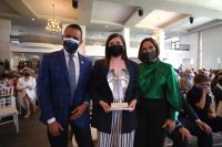 Guanajuato, Gto., a 11 de marzo de 2022.- En el marco de la conmemoración por el Día Internacional de la Mujer, la Asociación Mexicana de Mujeres Empresarias (AMEXME) Capítulo León realizó la entrega de reconocimientos a "Mujeres que inspiran", entre ellas la Dra. María Eugenia Garay Sevilla, profesora de la Universidad de Guanajuato (UG); y María Cristina Tena Castrejón, alumna de Ingeniería Química de esta Casa de Estudios.