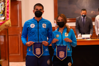 En representación de sus compañeras y compañeros, Federico Daniel Gómez Padilla, estudiante de la Licenciatura de Ingeniería Química, quien obtuvo el primer lugar en Boxeo, y la estudiante de la Licenciatura en Contador Público, representante en la disciplina de Karate Do, Andrea Kaori Hernández Moreno, externaron al resto de la comunidad deportiva los retos que implicaron la transición a una adaptación durante la pandemia.