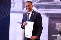 Correspondió al Mtro. Miguel Ángel Tamayo Taype, Coordinador General de los CIEES, hacer la entrega de la acreditación al Rector General de la UG como representante de la Casa de Estudios. El maestro destacó que a lo largo de 31 años de historia de estos Comités, esta es la primera ocasión en que dicho reconocimiento se extiende a una institución por un periodo de siete años.