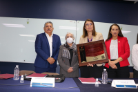 Luego de anunciar la acreditación internacional se reconoció el trabajo de las y los integrantes del comité evaluador externo de GRANA que coordinó la Dra. Josefa Ippolito Shepard y del comité evaluador interno coordinado por la Dra. María de Jesús Jiménez González e integrado por la Dra. Mercedes Moreno González, Dr. Raúl Fernando Guerrero Castañeda y la Dra. Marcela Ortega Jiménez, así como al comité académico del programa educativo.