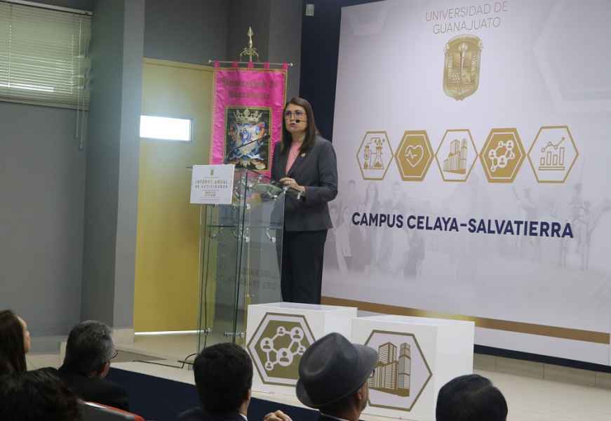La Dra. Graciela Ruiz Aguilar informó de los proyectos, programas y actividades en las que la comunidad universitaria concentró todos los esfuerzos durante el 2022 y que forman parte del programa de ejecución del PLADI 2021-2030 del Campus Celaya-Salvatierra.