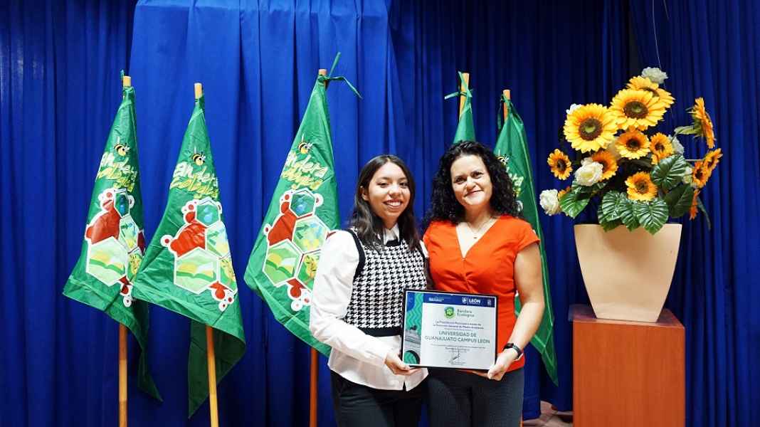 León, Gto., a 21 de marzo de 2023.- Con el objetivo de fortalecer las políticas ambientales y abonar a la sustentabilidad por medio de planteamientos solidarios con el entorno, el Campus León de la Universidad de Guanajuato (UG) fue acreedor al reconocimiento denominado “Bandera ecológica”, lo cual demuestra el esfuerzo por el cuidado de los recursos naturales que se utilizan en las sedes del campus.
