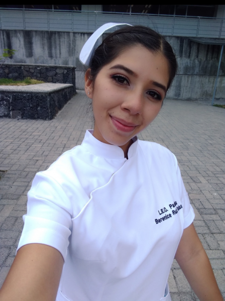 La joven de 23 años nació en la Ciudad de México y desde hace 17 años vive en Irapuato, Guanajuato. Actualmente está por concluir sus prácticas profesionales en el Hospital General de Irapuato, en donde ha tenido la oportunidad de adquirir una mayor destreza y experiencia en la práctica de enfermería.