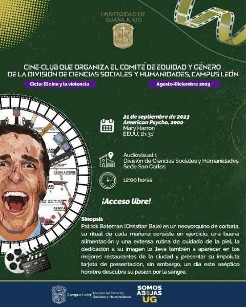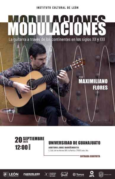El concierto ‘Modulaciones’ pondrá en marcha un recorrido de la guitarra a través de los continentes en sus siglos XX y XXI a cargo del musico Maximiliano Flores, este 20 de septiembre a las 12:00 horas sobre el auditorio Jorge Ibargüengoitia de la Sede Fórum; además se exhibirá el filme ‘American Psycho’ (2000) de la directora Mary Harron y protagonizada por Christian Bale, en el Salón Audiovisual 1 de la Sede San Carlos, a las 12:00 horas del jueves 21 de septiembre.