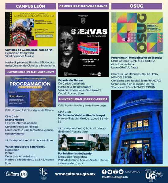 Además, “Cine en Línea para Disfrutar en Casa” continúa ofreciendo un total de ocho largometrajes gracias al ciclo “Mentalidades en Foco”, disponibles de forma gratuita en la página web https://www.cultura.ugto.mx/ hasta el domingo 8 de octubre.