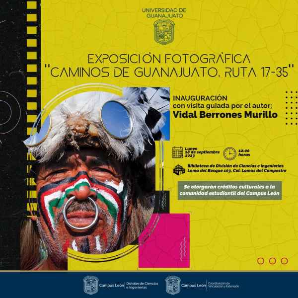El Campus León mantiene sus puertas abiertas para la comunidad universitaria y el público en general para ser testigos de la exposición “Caminos de Guanajuato. Ruta 17-35”, autoría de Vidal Berrones Murillo y disponible hasta el 30 de septiembre en la Biblioteca de la División de Ciencias e Ingenierías.