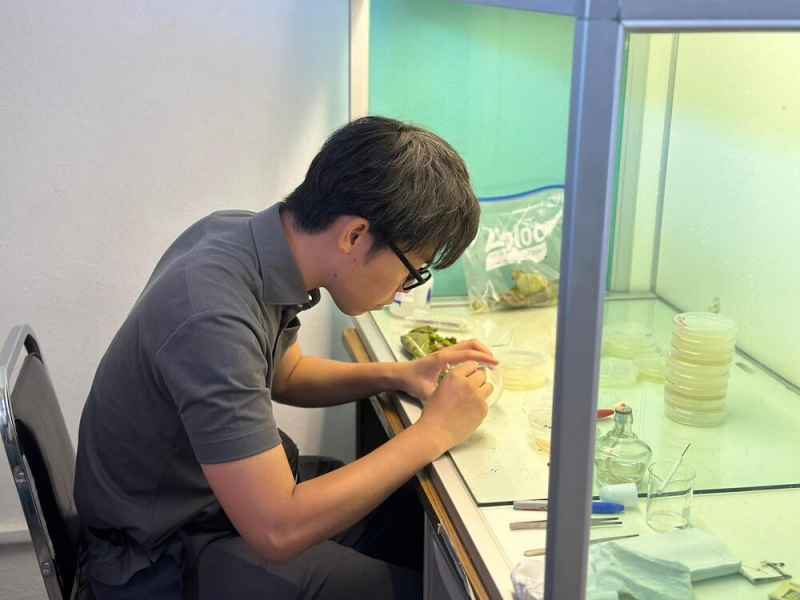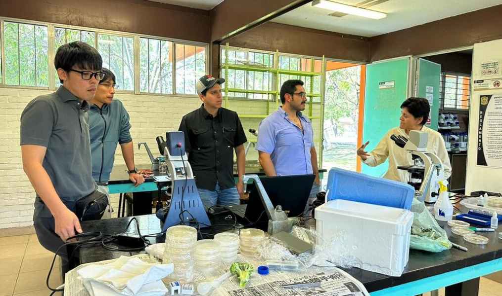 La doctora Diana Sanzón Gómez y el Doctor Héctor Gordon Núñez Palenius, docentes del programa de Ingeniería Agronómica, mostraron el trabajo que realizan en el Laboratorio de Fitopatología y en el Laboratorio de Cultivo de Tejidos Vegetales a Ryohei Hirose, genetista de brócoli para Norte y Sudamérica; a Keitaro Kanda, genetista de brócoli y coliflor de Takii Japón; a Yuya Uji, fitopatólogo especializado en cebolla de Takii Japón; a Rubén Aráoz, asistente de mejorador para el programa de cebolla y brócoli en Estados Unidos y México y a Alberto Velázquez, coordinador de investigación y desarrollo en la zona Bajío.