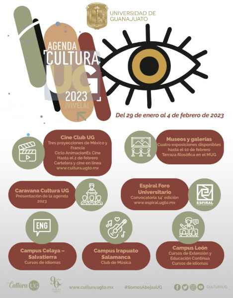 Para conocer la agenda cultural 2023, la cual se estará enriqueciendo durante todo el año, se puede consultar el sitio www.cultura.ugto.mx/