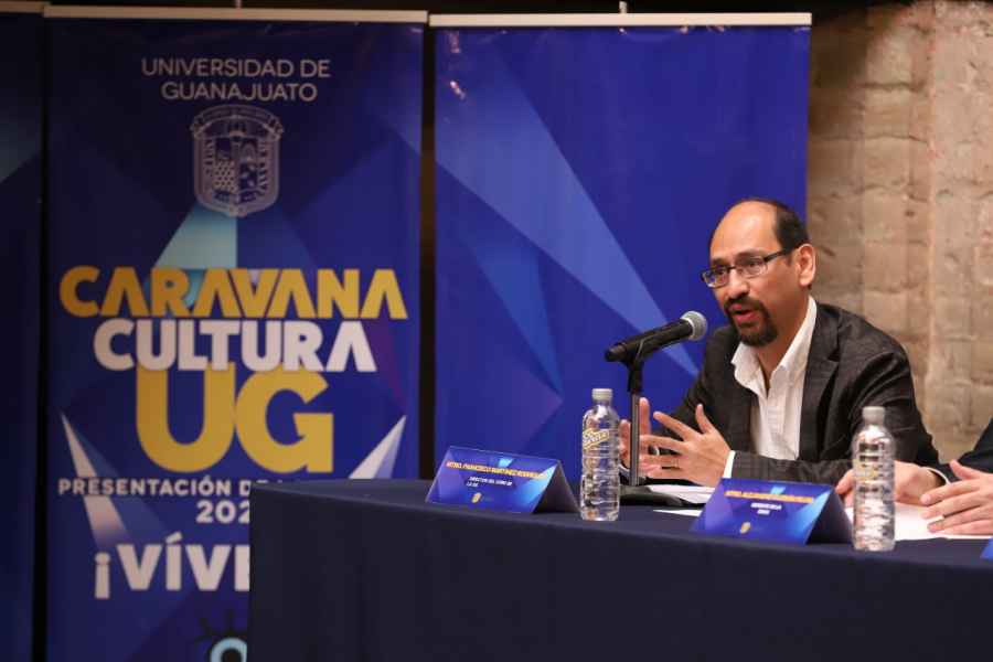Guanajuato, Gto., a 31 de enero de 2023.- Comenzó en la Universidad de Guanajuato (UG) la Caravana de presentación de la Agenda Cultural UG 2023, con el fin de extender la programación a todo tipo de públicos, y fortalecer la formación integral de la comunidad universitaria.