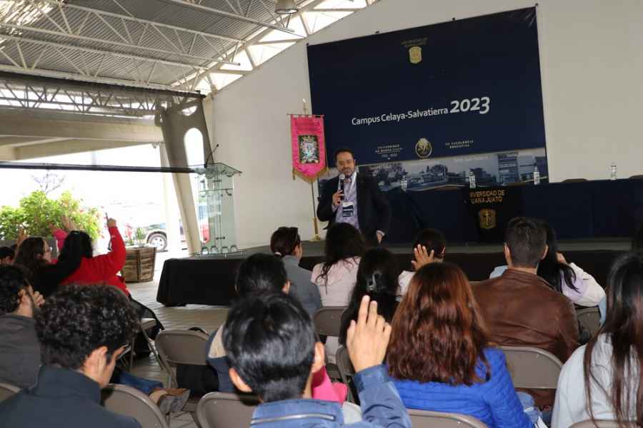 Celaya, Gto., a 11 de octubre de 2023.- Dio inicio el Primer Foro de Egreso, Empleo y Emprendimiento en el Campus Celaya-Salvatierra de la Universidad de Guanajuato (UG), como una estrategia para fortalecer la vinculación entre egresados(a)s UG y sectores público, privado y social.