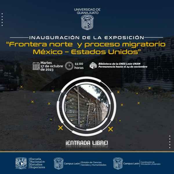 También se invita a las inauguraciones de la exposición “Frontera norte y proceso migratorio México- Estados Unidos” este 17 de octubre a las 11:00 horas en la Biblioteca de la ENES León UNAM; y del “Coloquio de Gestión Cultural” el 20 de octubre a las 10:00 horas en Museo de Arte e Historia de Guanajuato, MAHG.