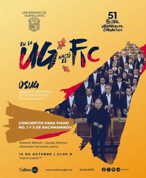 La calidad dancística del Ballet Folklórico de la UG (BAFUG) se hará presente en la Explanada de la Alhóndiga de Granaditas este 16 de octubre a las 20:00 horas con el programa “Al son de México”; mientras que la habilidad musical de la Orquesta Sinfónica de la UG (OSUG) presentará el programa “Conciertos para piano no. 1 y 3 de Rachmaninov” este 15 de octubre a las 21:00 horas en el gran escenario del Teatro Juárez.