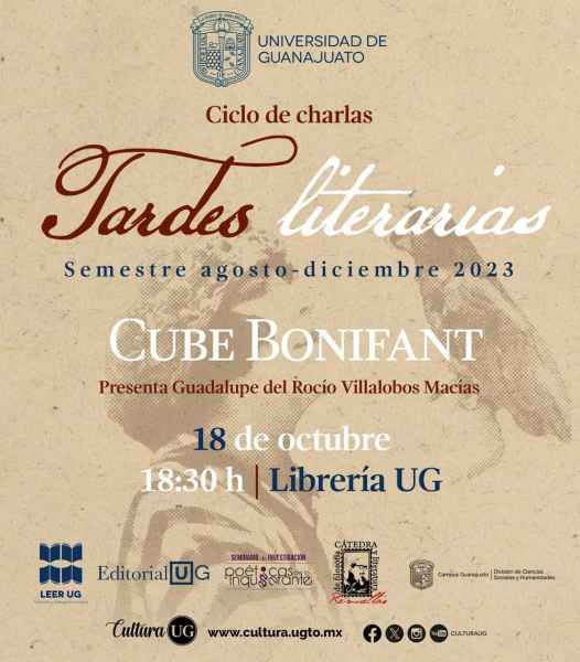 Con el interés de fomentar la lectura se llevará a cabo la charla “Cube Bonifant” a cargo de Guadalupe del Rocío Villalobos este 18 de octubre a las18:30 horas en la Librería UG; y el 19 del mismo mes a las 16:00 horas en el MUG a través del “Círculo de poesía en voz alta” se presentará “Flor de papel”.