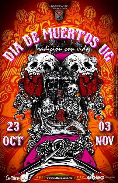 Guanajuato, Gto., a 16 de octubre de 2023.- La Universidad de Guanajuato (UG) en el marco del “Día de muertos” invita a todo público interesado a participar en las actividades artísticas, académicas y recreativas que realizará la comunidad universitaria para reforzar una de las tradiciones más importantes de este país, a través del programa “Día de Muertos UG, Tradición con vida”