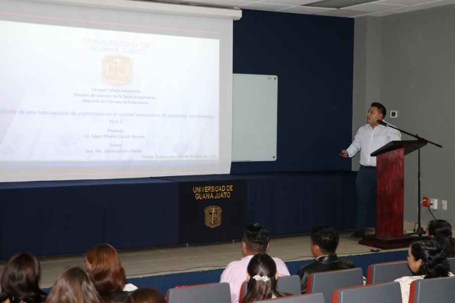 Celaya, Gto., a 24 de octubre de 2023.- En el Segundo Coloquio de investigación en Enfermería, estudiantes de la Maestría en Ciencias de Enfermería del Campus Celaya-Salvatierra de la Universidad de Guanajuato (UG) sometieron sus protocolos de investigación al escrutinio de revisore(a)s externos, del país y el extranjero, con miras a incidir en un escenario mundial a partir de un modelo de investigación multicéntrica.