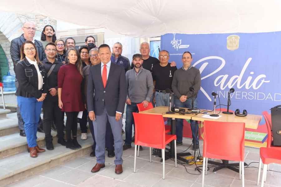 Guanajuato, Gto., a 10 de febrero de 2023.- Con una transmisión especial en vivo, el equipo que forma parte de Radio Universidad de Guanajuato inició las actividades conmemorativas por el 62 aniversario de este proyecto, en compañía del Rector General de la Casa de Estudios, Dr. Luis Felipe Guerrero Agripino.