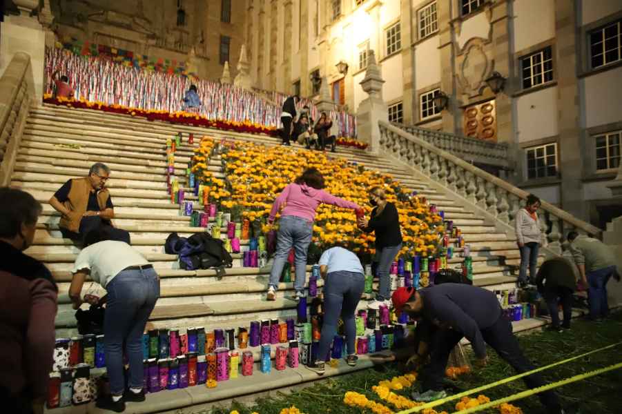 “El primer tramo de la escalinata está dedicado al sol por ser la primer deidad en la humanidad, el segundo tramo estará dedicado al agua como elemento fundamental de la ofrenda, ahí también colocaremos una cruz que representa la llegada del catolicismo a América y en la última parte antes de la llegada a la entrada del auditorio se hará una representación de la muerte, donde visualizamos que la gente suba toda la escalinata, se encuentre con la muerte y luego regrese al mundo de los vivos justo en la parte inferior de este inmueble”, explicó.