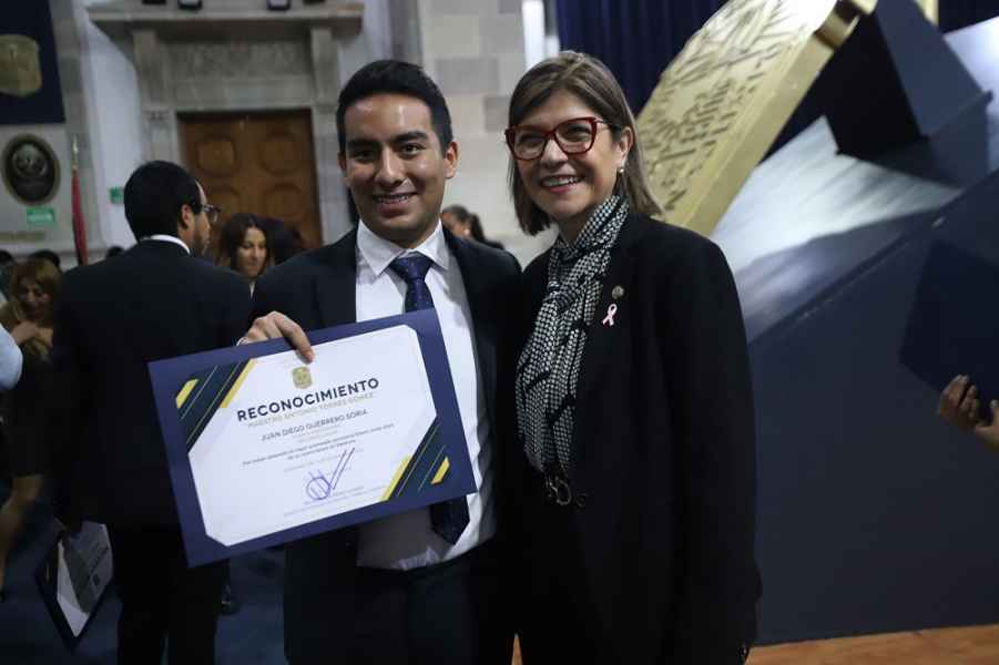 En la misma línea, Gloria María Fernanda Hernández López, galardonada con el premio “Maestro Antonio Torres Gómez” por el mejor promedio, en representación de las y los estudiantes de la Licenciatura en Derecho señaló: “Este reconocimiento abarca mucho más que nuestro propio esfuerzo y es por eso que se debe poner en alto (...) es una victoria para todas aquellas personas que han creído en nosotros y los que nos estiman y nos han acompañado en este camino”.