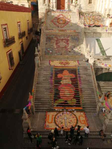 La tradicional ofrenda de Día de Muertos, costumbre que data de la época prehispánica, también formará parte de las festividades de la Máxima Casa de Estudios en la entidad, puesto que cerca de 300 estudiantes pertenecientes a la Escuela de Nivel Medio Superior de Guanajuato montarán la Mega Ofrenda Monumental UG en la escalinata del Edificio Central el próximo 31 de octubre en punto de las 21:00 horas.