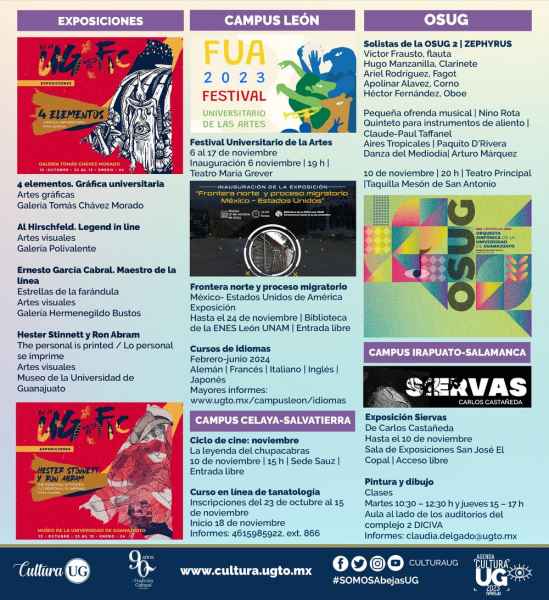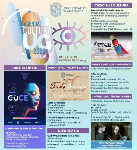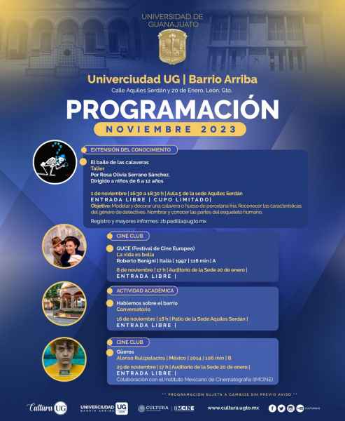 Programa sujeto a cambios sin previo aviso. Información y horarios disponibles en la página web www.cultura.ugto.mx.