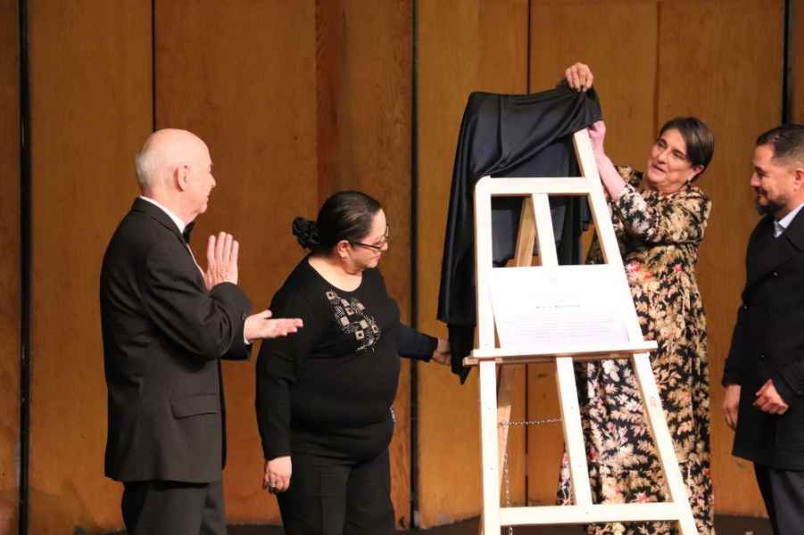 Antes del concierto, la Lcda. Adriana Camarena de Obeso, Directora del Instituto Estatal de Cultura; la Dra. Teresita Rendón Huerta Barrera, Rectora del Campus Guanajuato y el Dr. Salvador Hernández Castro, Secretario General de la UG, develaron la placa que designará como claustro “Mtra. Luz María Puente” a la actual sala de ensayos y actividades múltiples del Departamento de Música y Artes Escénicas de la División de Arquitectura, Arte y Diseño.