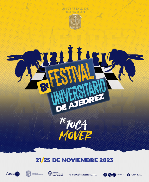 Del 21 al 25 de noviembre tendrá lugar el 8° Festival Universitario de Ajedrez 2023 que engloba diversas activades como charlas, proyección de películas y torneos relámpago a partir de las 9:00 horas en las instalaciones del Mesón de San Antonio.