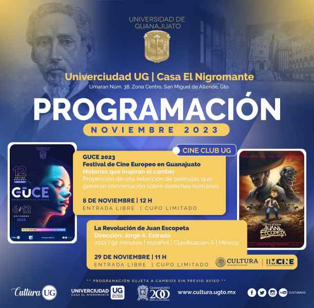 En San Miguel de Allende, en la Univerciudad Casa El Nigromante, el Cine Club invita a ver la película “La Revolución de Juan Escopeta” del director Jorge Estrada, el próximo 29 de noviembre a las 11:00 horas con acceso gratuito.