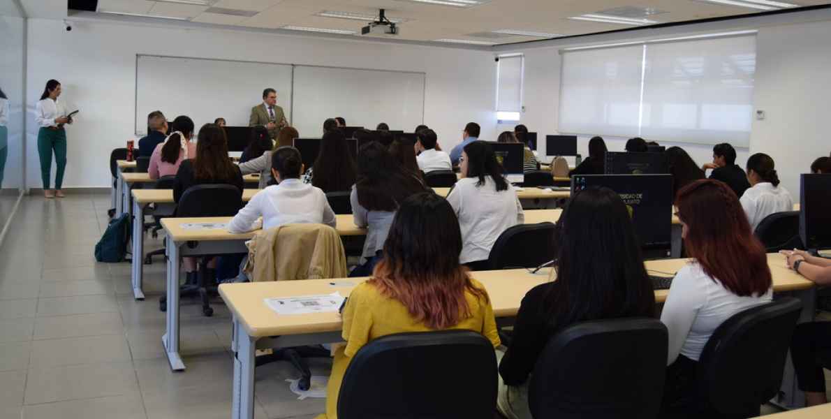 Irapuato, Gto. a 21 de noviembre de 2023.- El Departamento de Enfermería y Obstetricia de la Universidad de Guanajuato (UG) prepara a sus estudiantes para el mundo laboral y la vida colegiada, mediante el Seminario de Gestión y Administración en Enfermería, en colaboración con la Dra. Ernestina Aguirre Vidaurre, Presidenta del Colegio de Enfermeras de Costa Rica y el Mtro. Víctor Rogelio Sánchez Becerra, Jefe de Enfermería del Hospital Materno Infantil.