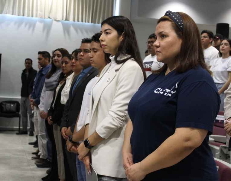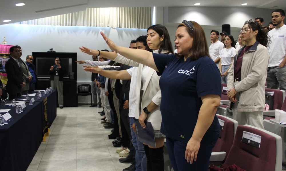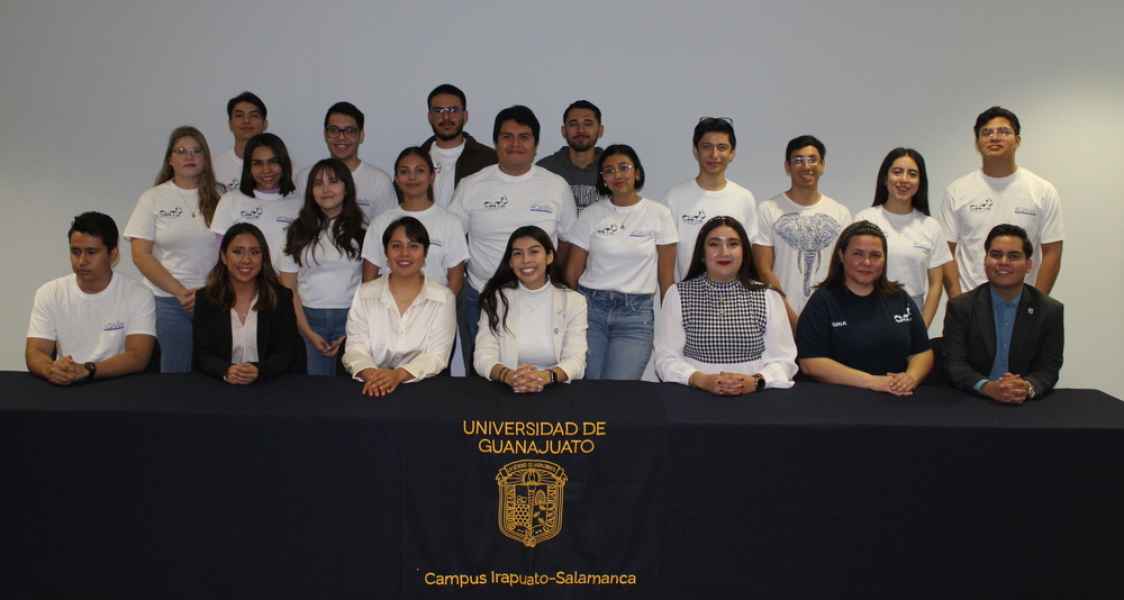 En compañía de su asesor, el Dr. José Manuel Riesco Ávila, rindieron protesta ante autoridades universitarias del Campus Irapuato – Salamanca. Conforman la directiva del nuevo grupo: Carolina Reyes Sánchez, Christian Arturo Campos Vega, Emilio Galván Rentería, Arantxa Montserrat González Aguilar, María Celeste Santiago Zavala, Zivoni Dalhi Mosqueda Huerta y Victoria Paola Cabrera Madera.