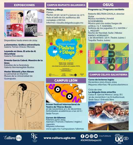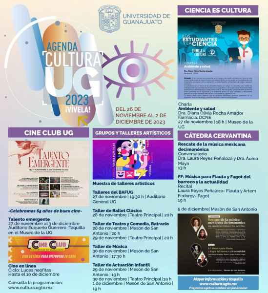 Programa sujeto a cambios sin previo aviso, taquilla y mayores informes en la página de internet www.cultura.ugto.mx.