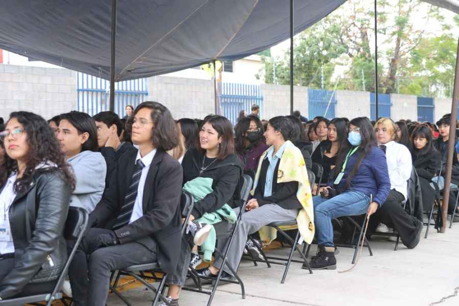 También agradeció la presencia de las y los profesores fundadores, quienes entraron a las aulas en el año 2013, y a partir de ahí ocho generaciones han egresado, cada una con características muy particulares, pero todas con sentido de pertenencia, añadió.