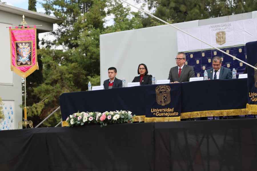 Celaya, Gto., a 27 de noviembre de 2023.- Autoridades del Colegio de Nivel Medio Superior (CNMS) de la Universidad de Guanajuato se dieron cita para conmemorar el décimo aniversario de la Escuela de Nivel Medio Superior de Celaya sede Sauz, la cual ha superado los más de 1 mil 600 estudiantes dentro de sus aulas y ocho generaciones egresadas en los últimos años.