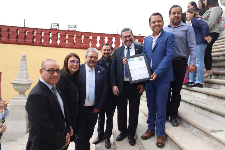 Guanajuato, Gto., a 27 de noviembre de 2023.- Por séptimo año consecutivo, la Universidad de Guanajuato recibió la insignia “Buenas Prácticas Ambientales 2023” que otorga la Procuraduría Ambiental y de Ordenamiento Territorial del Gobierno del Estado (PAOT), esto por su notable promoción a los modelos de participación institucional para contribuir a la disminución de los efectos del cambio climático.